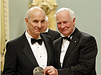 Ottawa, June 11, 2014 - The Governor General of Canada, David Johnston, presented the 'Michener-Baxter Special Award' to Tim Kotcheff and Alain Guilbert during the 2013 Michener Awards ceremony held at Government House in Ottawa.