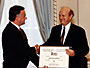 Ottawa, June 19, 1990. Montreal Le Devoir has won the 1989 Michener Award for meritorious public service in journalism. The French language daily received the award for its coverage of the issues and challenges facing the Inuit people in northern Quebec in advance of a referendum on a proposal for self-government. The proposal was ultimately passed by native voters on April 10, 1989. Paul-André Comeau, editor-in-chief of Le Devoir, accepted the 1989 Michener Award on behalf of the newspaper.