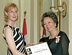 The Governor General also presented the 2001 Michener-Deacon Fellowship to Martine Turenne, a reporter with L'Actualité magazine. The Fellowship provides $20,000 to support a four-month study leave. Ms. Turenne will use the Fellowship to report on the impact of the North American Free Trade Agreement (NAFTA) on an underdeveloped region of Mexico by studying at a Mexican university and living in the heart of the region. Her proposal was selected out of 10 entries for the Fellowship. Full Story.
